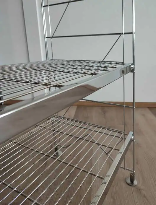 1x Gitterbord, 610 mm tief, 401 - 488 - 605 - 654 - 758 - 910 - 1062 oder 1214 mm breit, Metall, verchromt, mit integrierten Halterungen