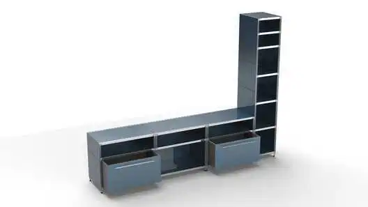 Metall-KUBUS in Höhe und Breite beliebig mit Klappen, Doppelschublade, großem Schubfach oder offenen Elementen lieferbar. In weiteren Farbvarianten erhältlich: weiß, schwarz oder Sonderfarben.