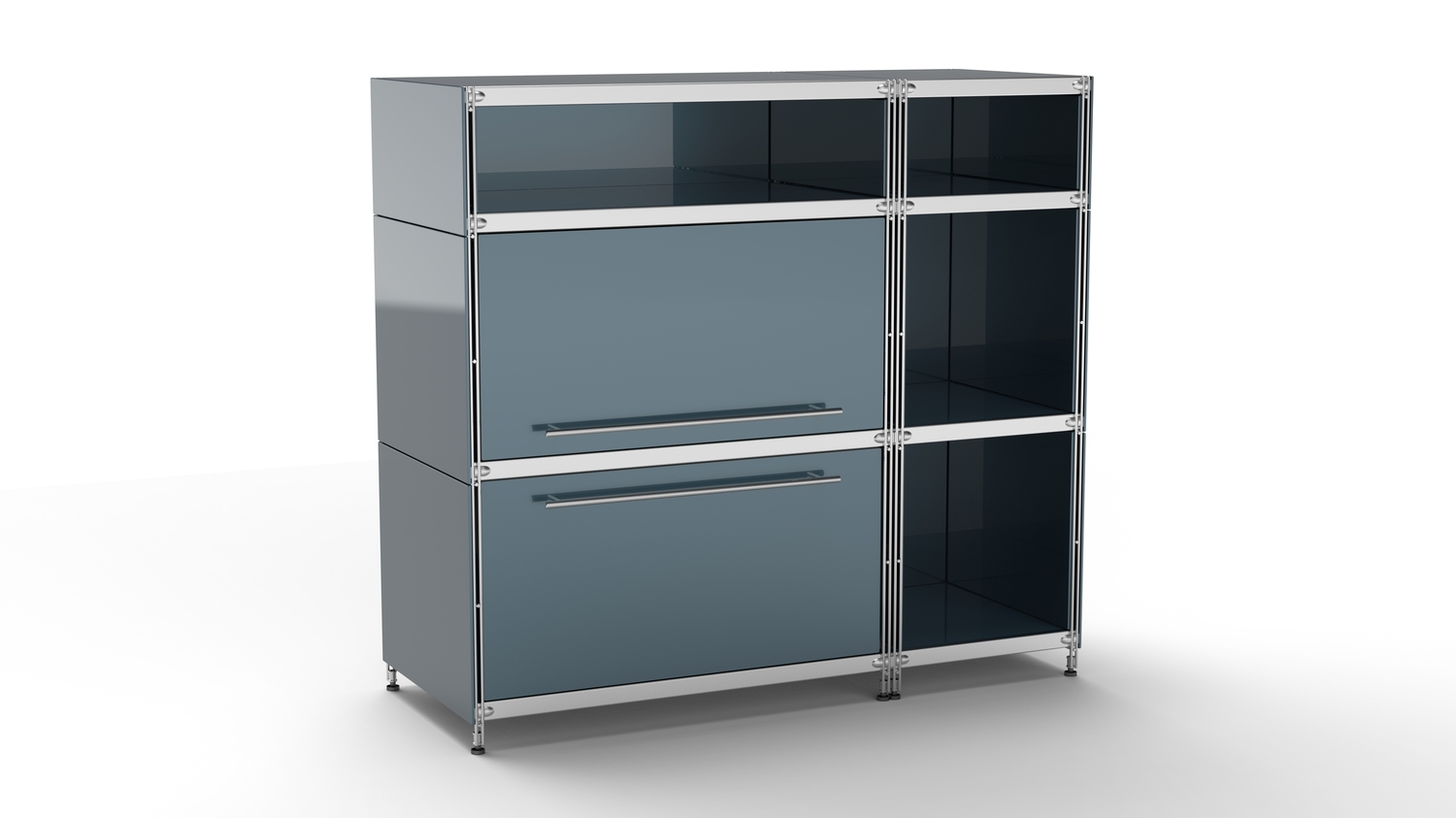 KUBUS Sideboard Metall anthrazit pulverbeschichtet mit 1 Klappe + 1 großen Schublade + 4 offenen Fächern