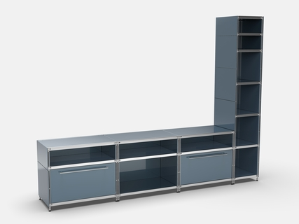 Sideboard in Höhe und Breite beliebig mit Klappen, Doppelschublade, großem Schubfach oder offenen Elementen lieferbar. In weiteren Farbvarianten erhältlich: weiß, anthrazit oder in Sonderfarben lieferbar.