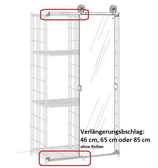 Mit dem speziellen Gitterbodenbeschlag wird der Verlängerungsbeschlag an Gitterböden festgeschraubt. Für jede Verlängerungsleiste werden 2 Spezialhalterungen mit Loch und Gewinde benötigt.