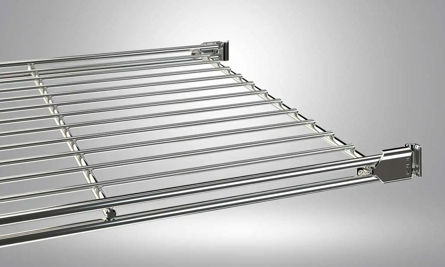 1 Set bestehend aus 1x Seitenteil (Höhe: 117 cm) + 4x Gitterboden in 48 cm, 67 cm oder 87 cm, 25 cm tief, Metall verchromt mit Montagematerial, Serie: BIII 250