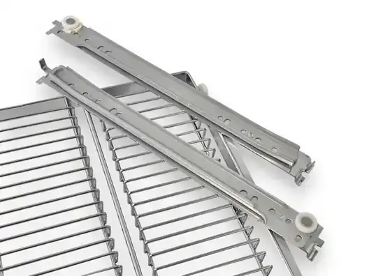 Hochwertig verarbeiteter DVD-Boden, aus Metall, verchromt, ausziehbar für 80 DVDs.