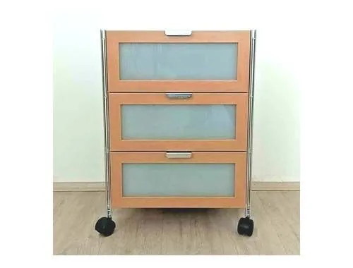 Hochwertiger Rollcontainer mit 3 Schubfächern. Die satinierte Milchglasscheibe ist in die Schubladenfront eingearbeitet, und gibt dem Bürocontainer einen gewissen Pfiff.
