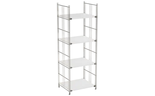 Die Holzböden können beliebig in den Querverstrebungen angeordnet werden. Das Regal kann durch weitere Holzböden und Elemente aus der BIII 380 Serie individuell ergänzt werden.