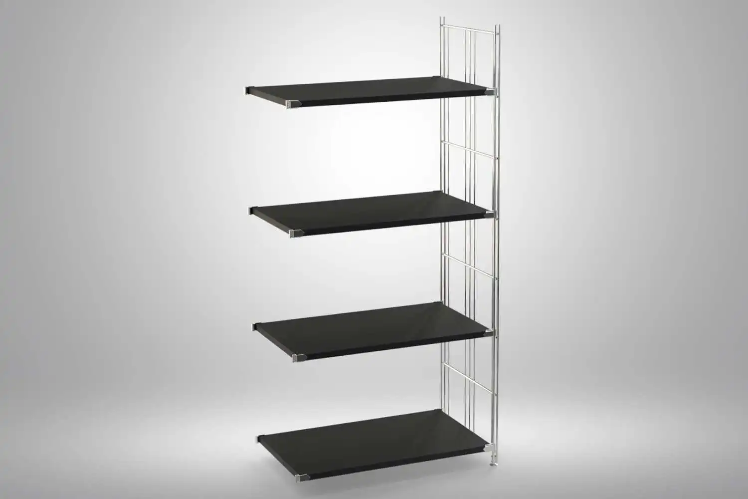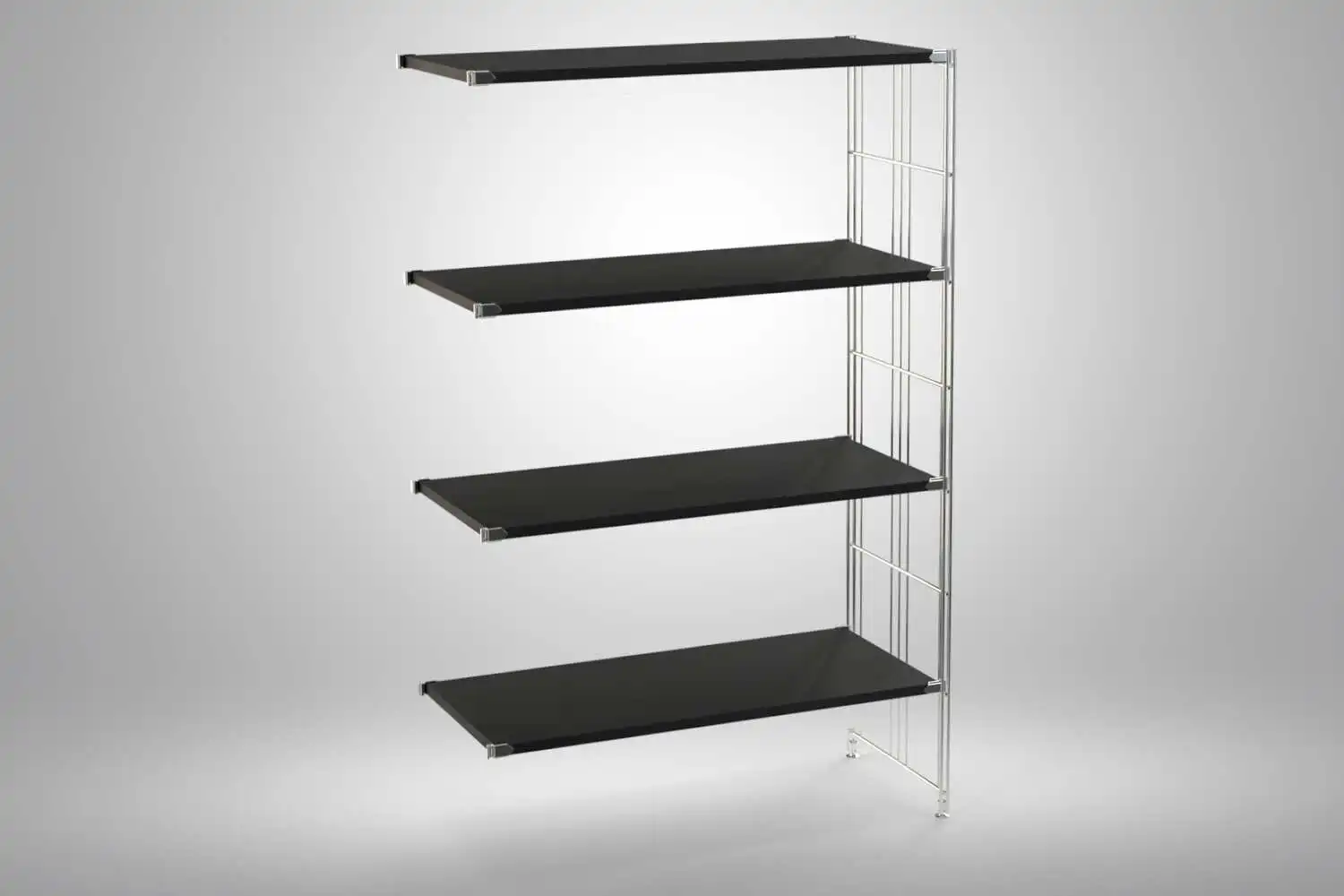 Stellen Sie sich Ihr Regal in beliebiger Breite zusammen: Ergänzungssets für Ihr Regal mit Regalböden in Schwarz. Kombinieren Sie unterschiedliche Breiten und Höhen zu einer kompleten Wand. Schrägen werden so optimal ausgenutzt!