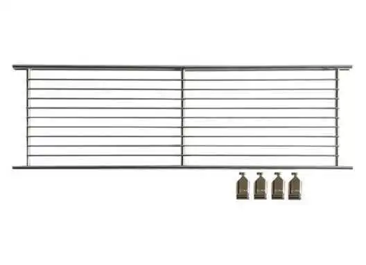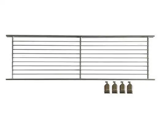 Hochwertig verarbeiteter Gitterboden aus verchromtem Stahl mit 4 Beschlägen zum Befestigen des Bodens.
