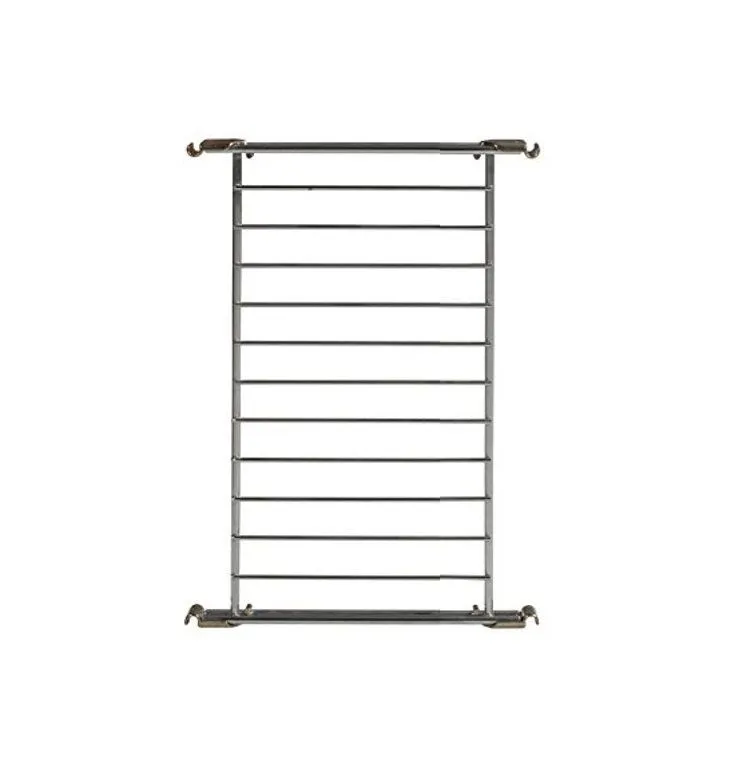 Hochwertig verarbeiteter Gitterboden aus verchromtem Stahl mit 4 Beschlägen zum Befestigen an der Regalleiter. Diese liegen dem Boden bei. Der Boden ist in folgenden weiteren Breiten erhältlich: 46x38 cm, 85x38 cm, 104x38 cm,oder 124x38.