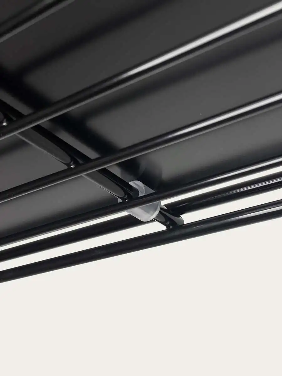 Die Gitterböden lassen sich an jeder Querstrebe einhängen. Mit Ergänzungssets ist das Regal in der Breite beliebig erweiterbar.