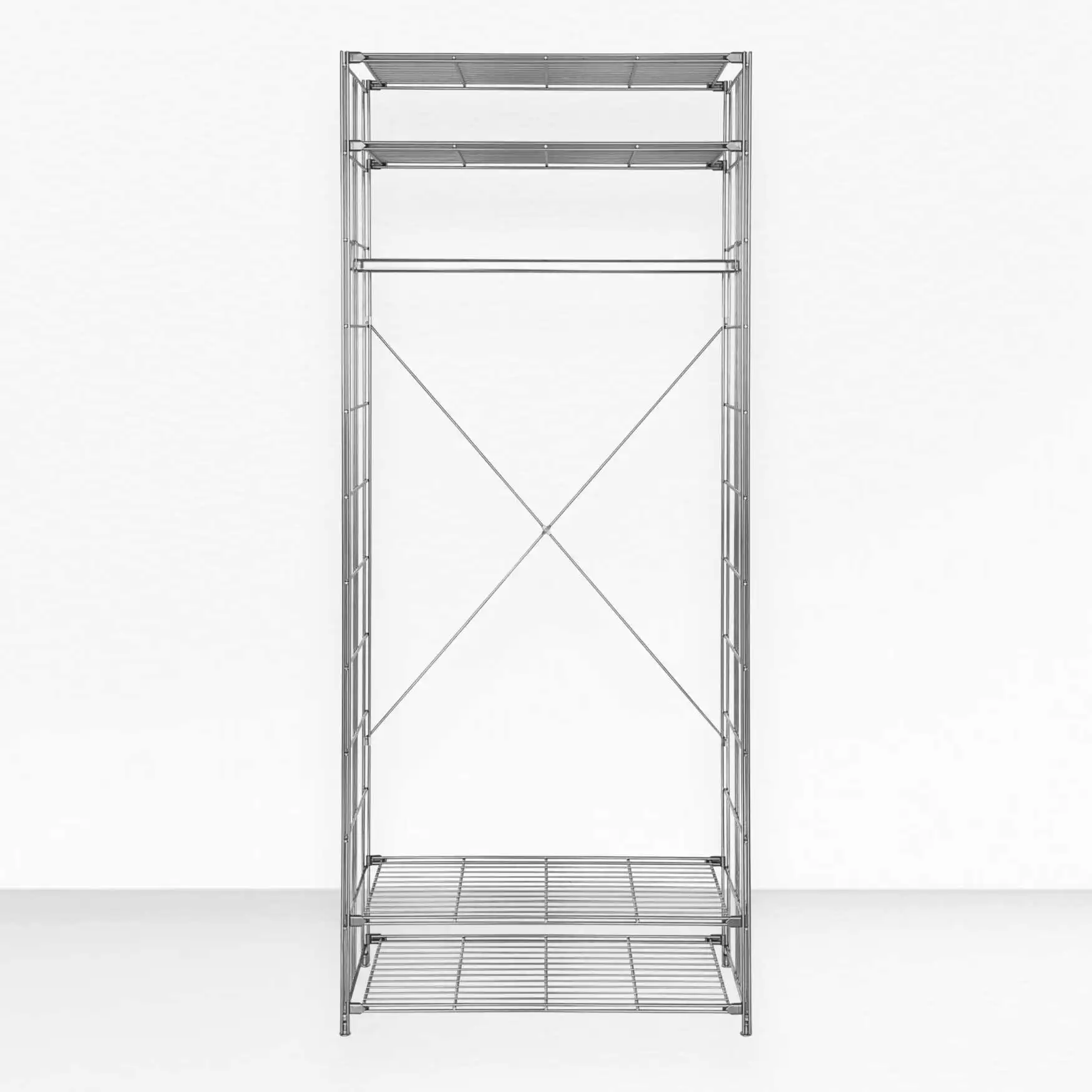 1x Garderobenset mit 4 Gitterböden, Kleiderstange und Kreuzstrebe, 208 cm hoch, 87 cm breit, 38 cm tief Metall, verchromt aus der Serie B III 380