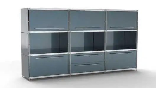 Sideboard in Höhe und Breite beliebig mit Klappen, Doppelschublade, großem Schubfach oder offenen Elementen lieferbar. In weiteren Farbvarianten erhältlich: weiß, schwarz oder in Sonderfarben lieferbar.