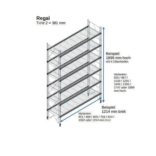 • Lieferumfang: Ergänzungsset bestehend aus: 1x Regalleitern mit Fußstollen und Zylinderschraube, sowie Gitterborde in der gewählten Anzahl und Breite! Erweiterungs-Regal für ETAGAIR-Regale in 381 mm Tiefe. Ohne Dekoration! Fußplatten oder Rollen sind nicht enthalten. Bitte separat bestellen.