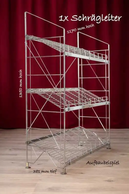 Schrägen lassen sich durch Kombination unterschiedlicher Höhen optiamal nutzen! Der Raster-Abstand beträgt 152 mm. Aus verchromtem Metall, made in Germany, direkt vom Hersteller!