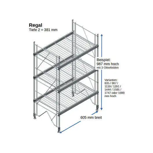 • Ergänzungsset passend zu: ETAGAIR-Regalen in 381 mm Tiefe (Tiefe 2): 700056 - 700011 - 700057 - 700058 - 700059 - 700014 - 700060 - 700017