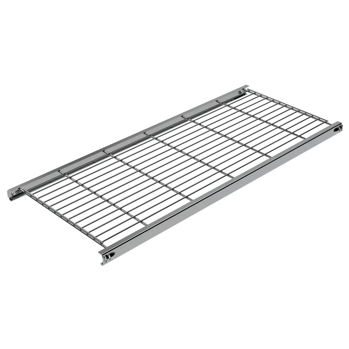 Klassisches Designer-Regal in kühlem verchromtem Metall. Das Regal ist äußerst stabil und passt zu jedem Wohn-, Geschäfts- und Bürostil. Die Böden verfügen über integrierten Halterungen. Dadurch ist die Montage einfach und schnell ohne Spezial-Werkzeuge möglich. Die Gitterböden lassen sich individuell an jeder Querstrebe anordnen.