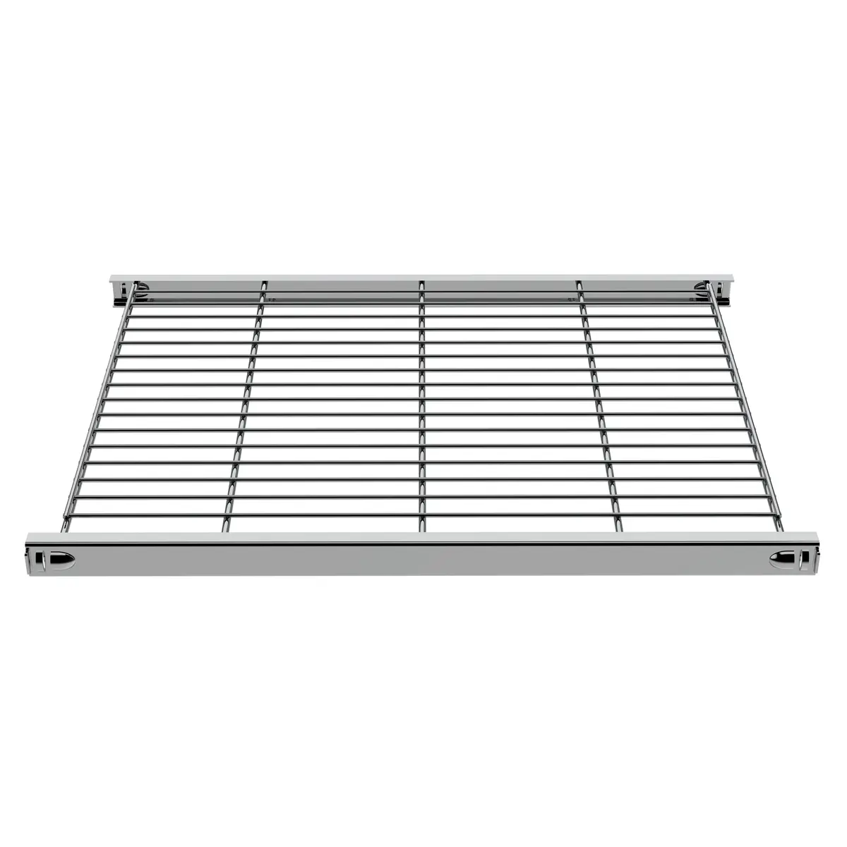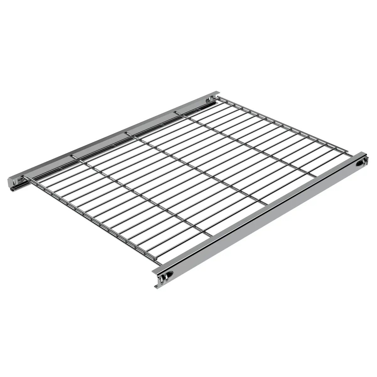 Klassisches Designer-Regal in kühlem verchromtem Metall. Das Regal ist äußerst stabil und passt zu jedem Wohn-, Geschäfts- und Bürostil. Die Böden verfügen über integrierten Halterungen. Dadurch ist die Montage einfach und schnell ohne Spezial-Werkzeuge möglich. Die Gitterböden lassen sich individuell an jeder Querstrebe anordnen.