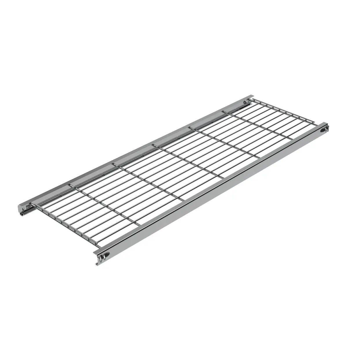 Klassisches Designer-Regal in kühlem verchromtem Metall. Das Regal ist äußerst stabil und passt zu jedem Wohn-, Geschäfts- und Bürostil. Die Böden verfügen über integrierten Halterungen. Dadurch ist die Montage einfach und schnell ohne Spezial-Werkzeuge möglich. Die Gitterböden lassen sich individuell an jeder Querstrebe anordnen.