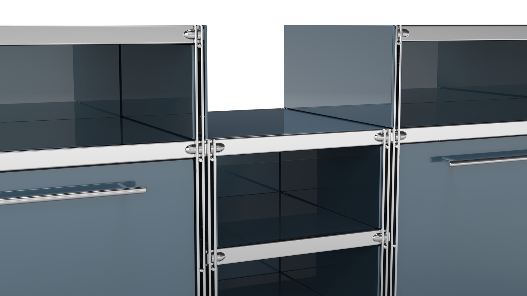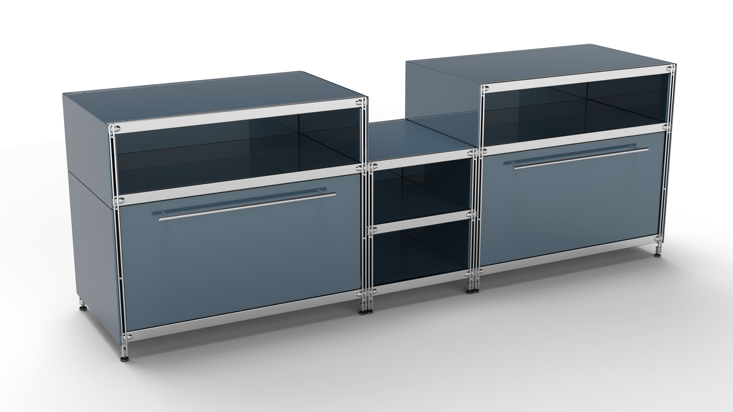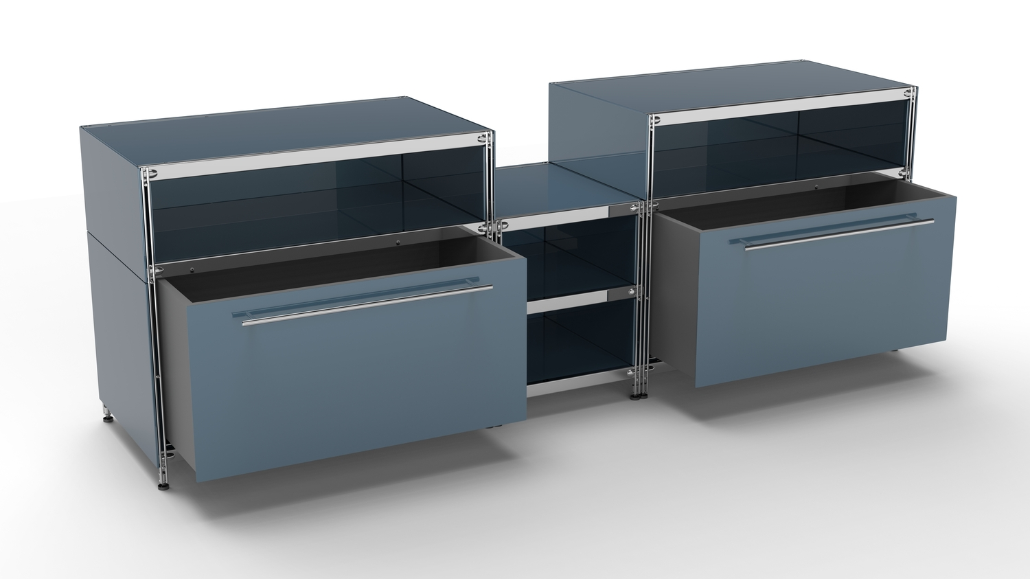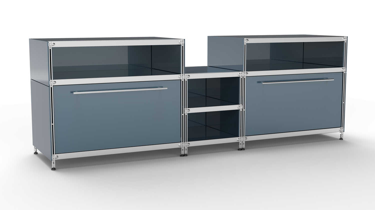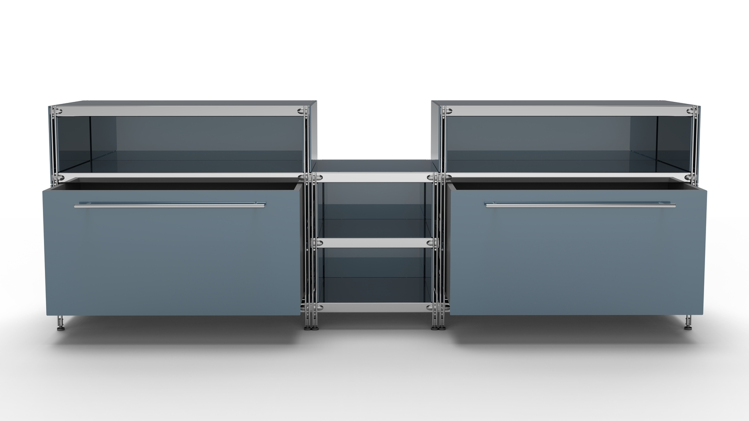 KUBUS stufig Metall anthrazit pulverbeschichtet mit 4 Fächern offen + 2 Schubfächern groß