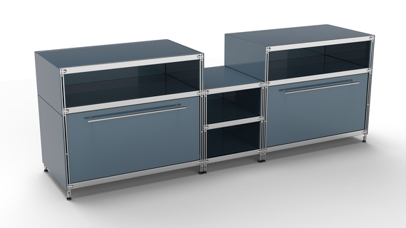 Sideboard in Höhe und Breite beliebig mit Klappen, Doppelschublade, großem Schubfach oder offenen Elementen lieferbar. In weiteren Farbvarianten erhältlich: weiß, anthrazit oder in Sonderfarben lieferbar.