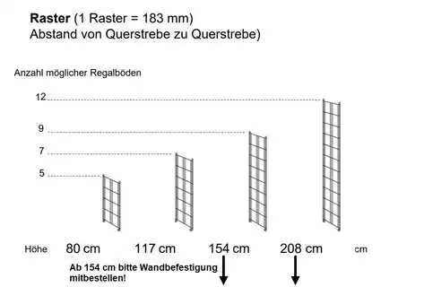 Bitte bestellen Sie ab einer Leiterhöhe von 154 cm Wandbefestigungen mit!