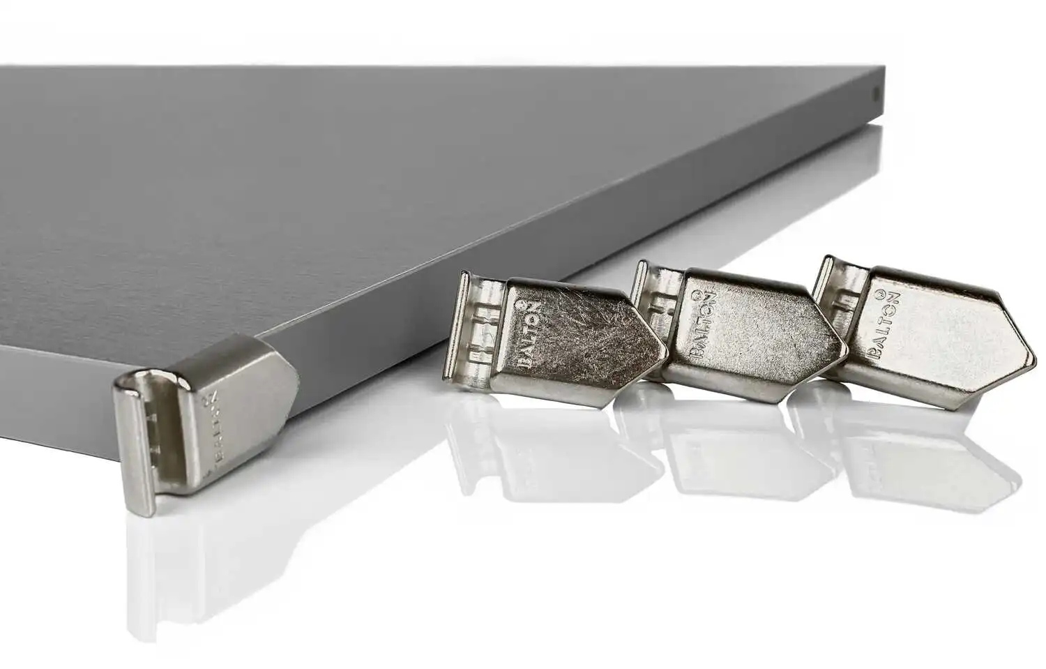 Der Boden ist zur Montage in Regalleitern in 38er Tiefe geeignet. Kompatibel zur Serie BIII 380.