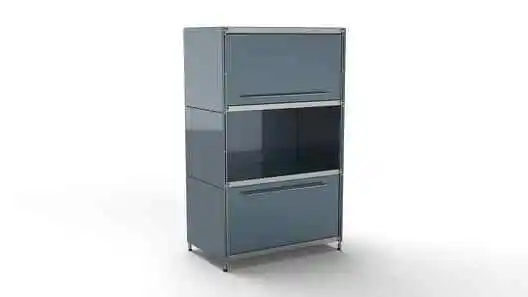KUBUS Highboard Metall anthrazit pulverbeschichtet mit Klappe + offenem Fach + 1 Schubfach groß 79 cm breit