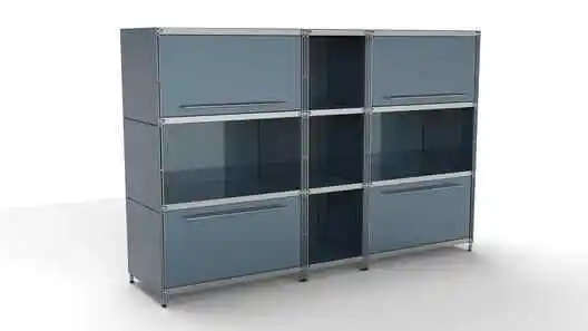 KUBUS Highboard Metall anthrazit mit 2 Klappen + 5 offenen Fächern + 2 Schubfächern groß 196 cm breit