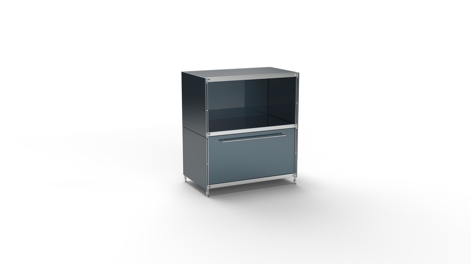 KUBUS Sideboard Metall anthrazit pulverbeschichtet mit 1 Fach offen + 1 Schubfach groß