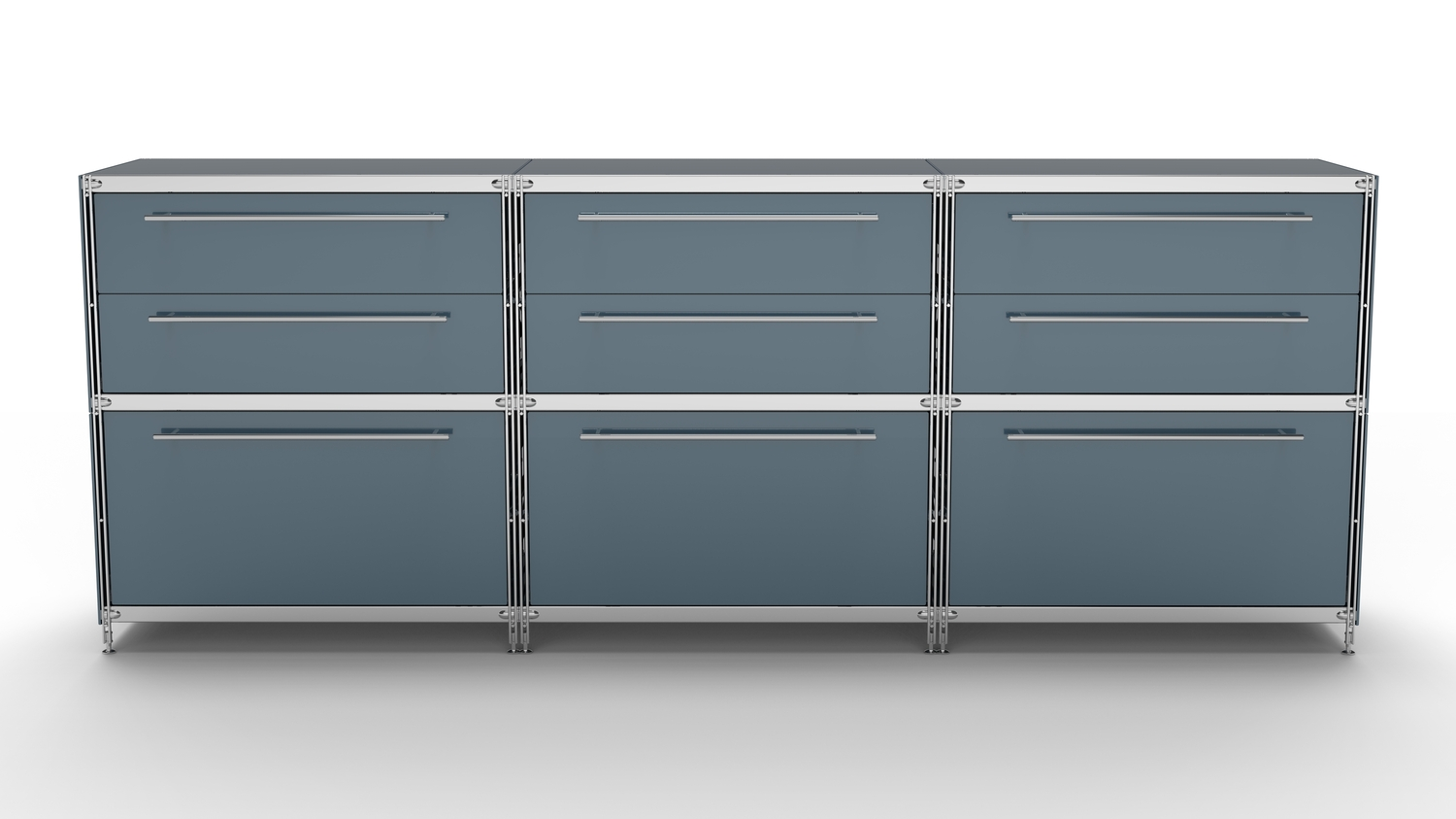 KUBUS Sideboard Metall anthrazit pulverbeschichtet mit 3 Doppel-Schubladen + 3 Schubfächern groß 235 cm breit
