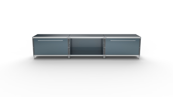 Metall-KUBUS in Höhe und Breite beliebig mit Klappen, Doppelschublade, großem Schubfach oder offenen Elementen lieferbar. In weiteren Farbvarianten erhältlich: weiß, anthrazit oder Sonderfarben.