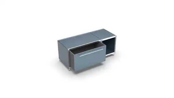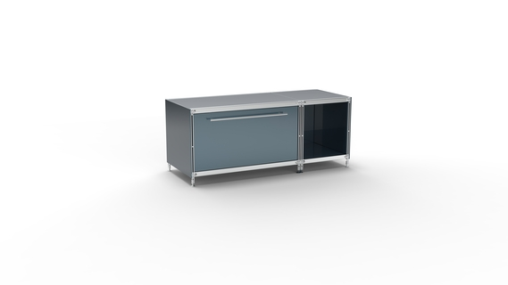 Metall-KUBUS in Höhe und Breite beliebig mit Klappen, Doppelschublade, großem Schubfach oder offenen Elementen lieferbar. In weiteren Farbvarianten erhältlich: weiß, schwarz oder Sonderfarben.