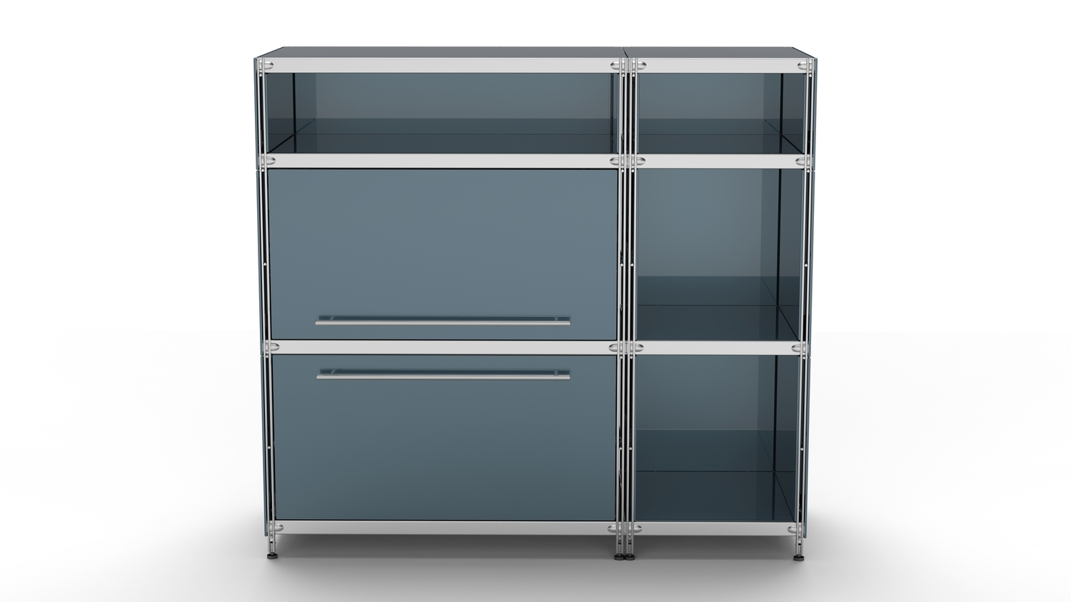 KUBUS Sideboard Metall anthrazit pulverbeschichtet mit 1 Klappe + 1 großen Schublade + 4 offenen Fächern