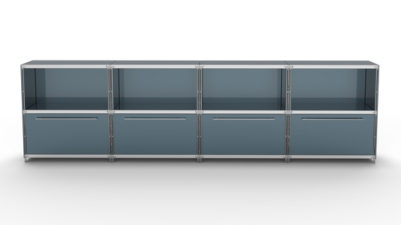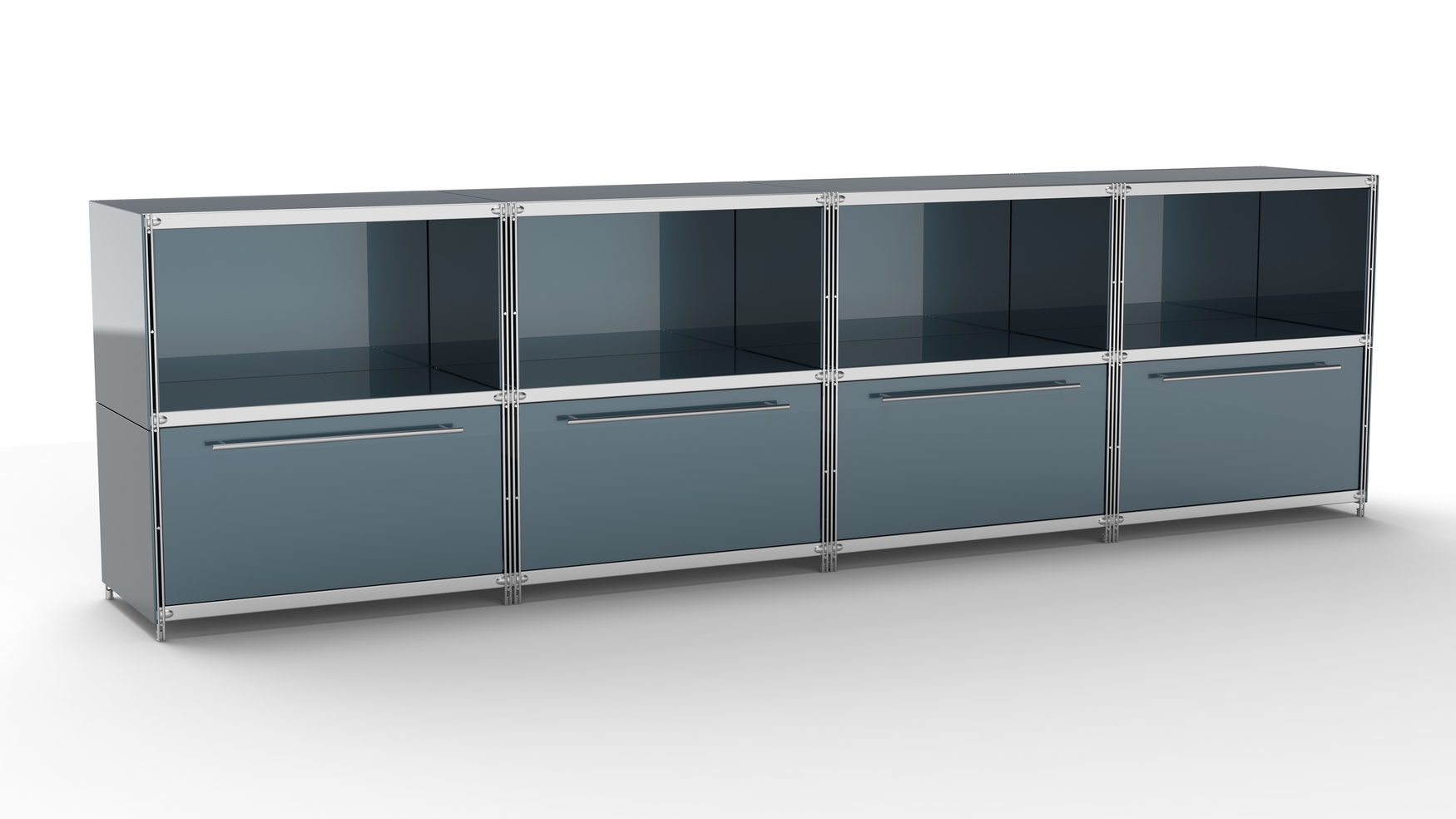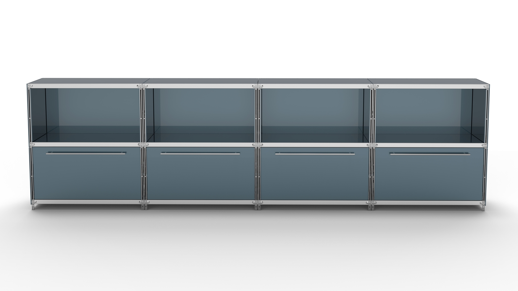 KUBUS Sideboard Metall anthrazit pulverbeschichtet mit 4 Fächern offen + 4 Schubfächern groß