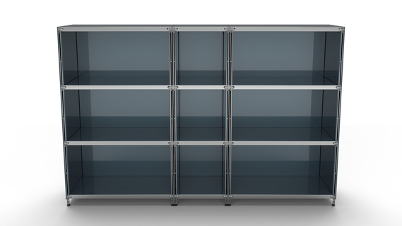 KUBUS Highboard Metall anthrazit mit 9 offenen Fächern 196 cm breit
