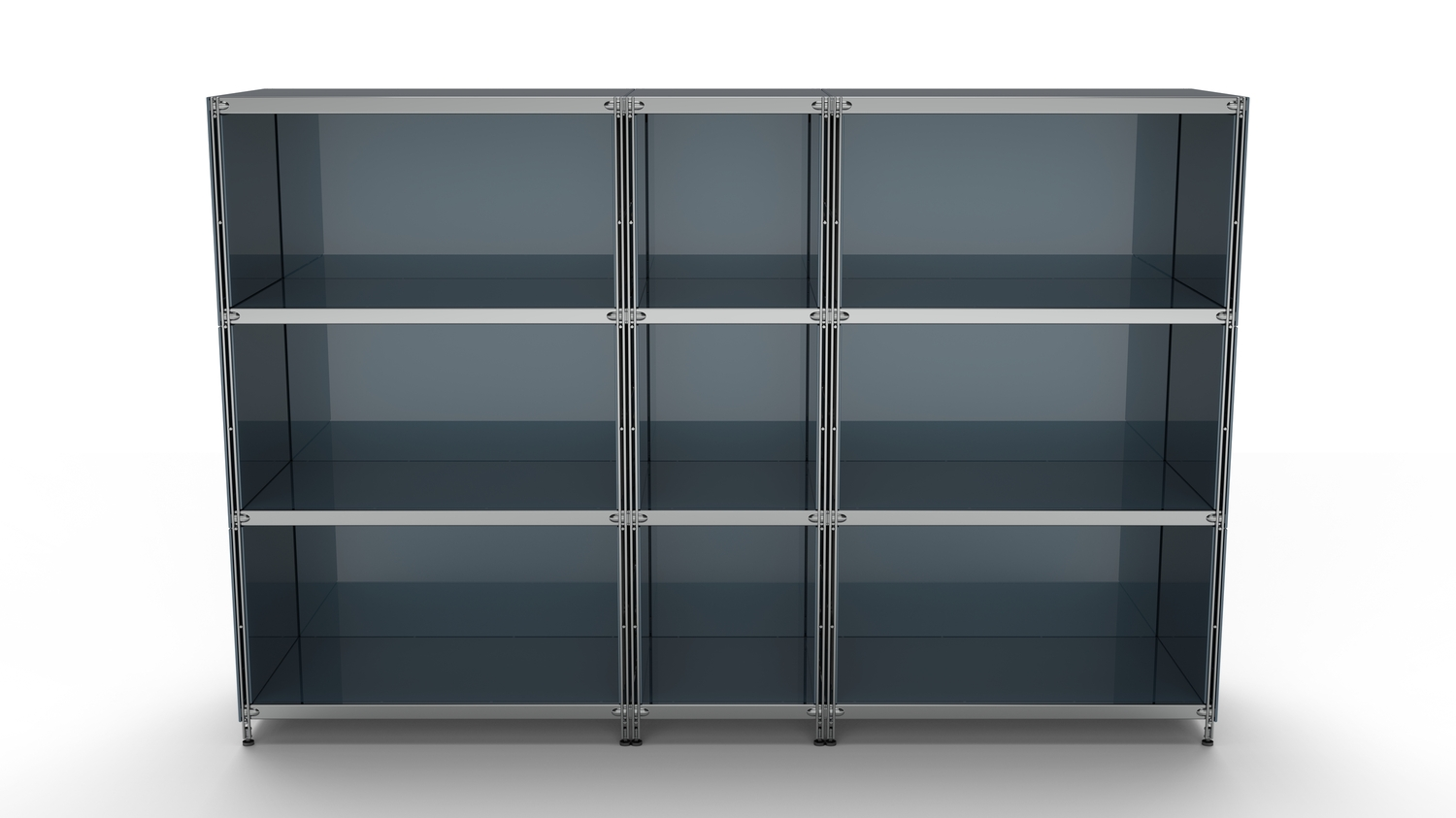 Metall-KUBUS in Höhe und Breite beliebig mit Klappen, Doppelschublade, großem Schubfach oder offenen Elementen lieferbar. In weiteren Farbvarianten erhältlich: weiß, schwarz oder Sonderfarben.