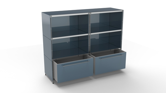 KUBUS Highboard Metall anthrazit pulverbeschichtet mit 4 offenen Fächern + 2 Schubladen groß 157 cm breit