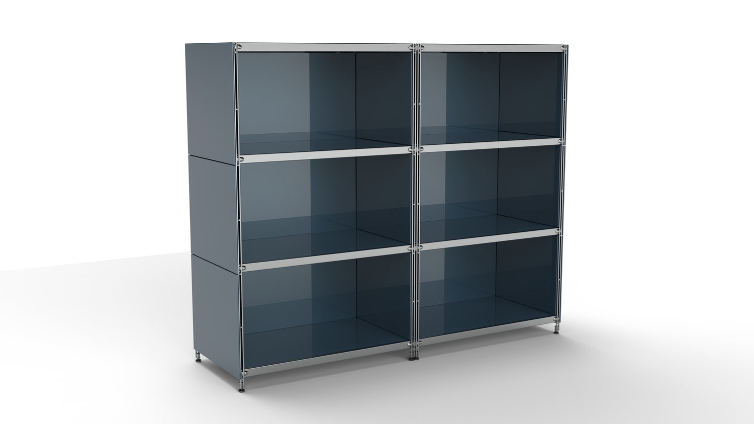 KUBUS Highboard Metall anthrazit pulverbeschichtet mit 6 offenen Fächern 160 cm breit