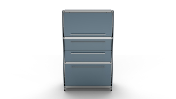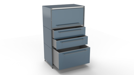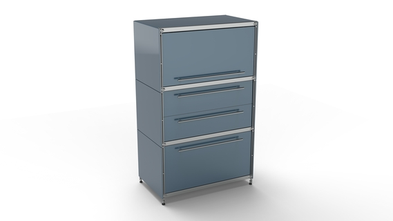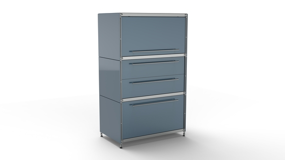 KUBUS Highboard Metall anthrazit pulverbeschichtet mit Klappe + Doppel-Schublade + Schublade groß 80 cm breit