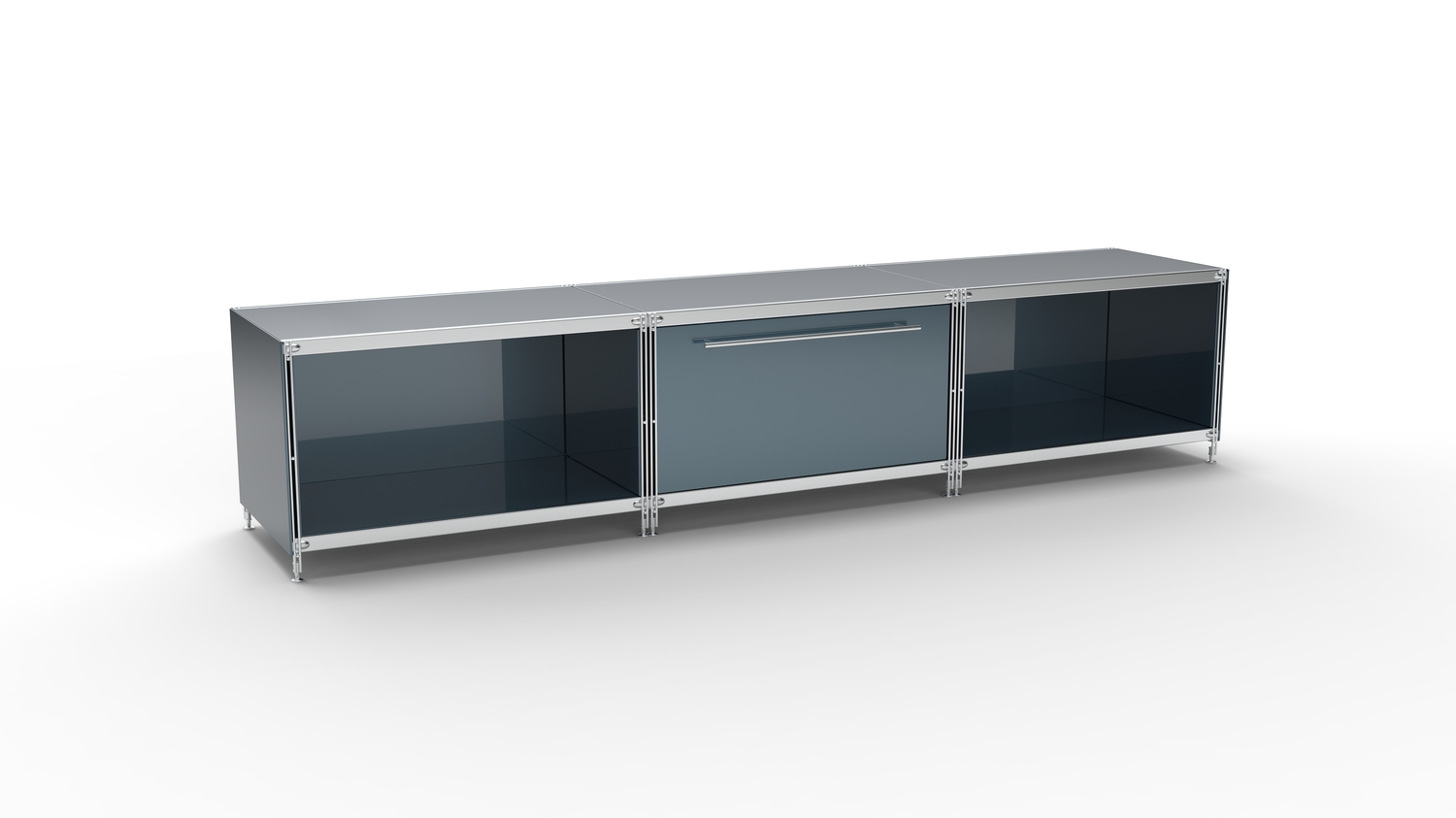 KUBUS Lowboard Metall anthrazit mit 2x offenem Fach + 1 Schublade 235 cm breit