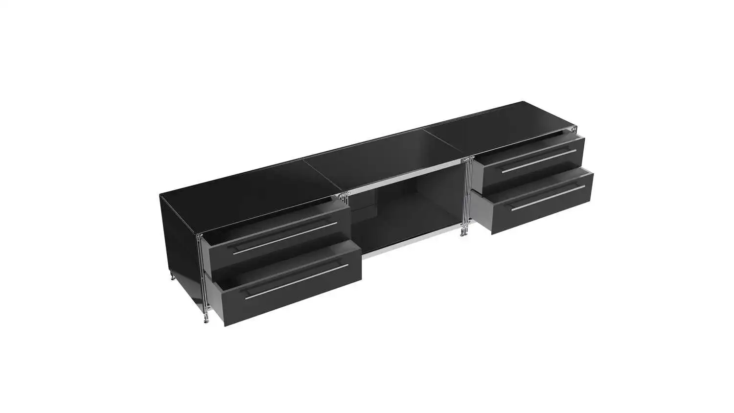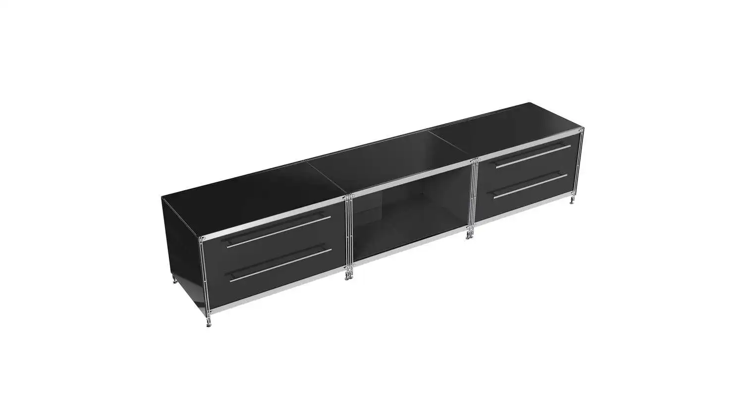 KUBUS Lowboard Metall schwarz mit 2 Doppel-Schubladen + offenem Fach 235 cm breit