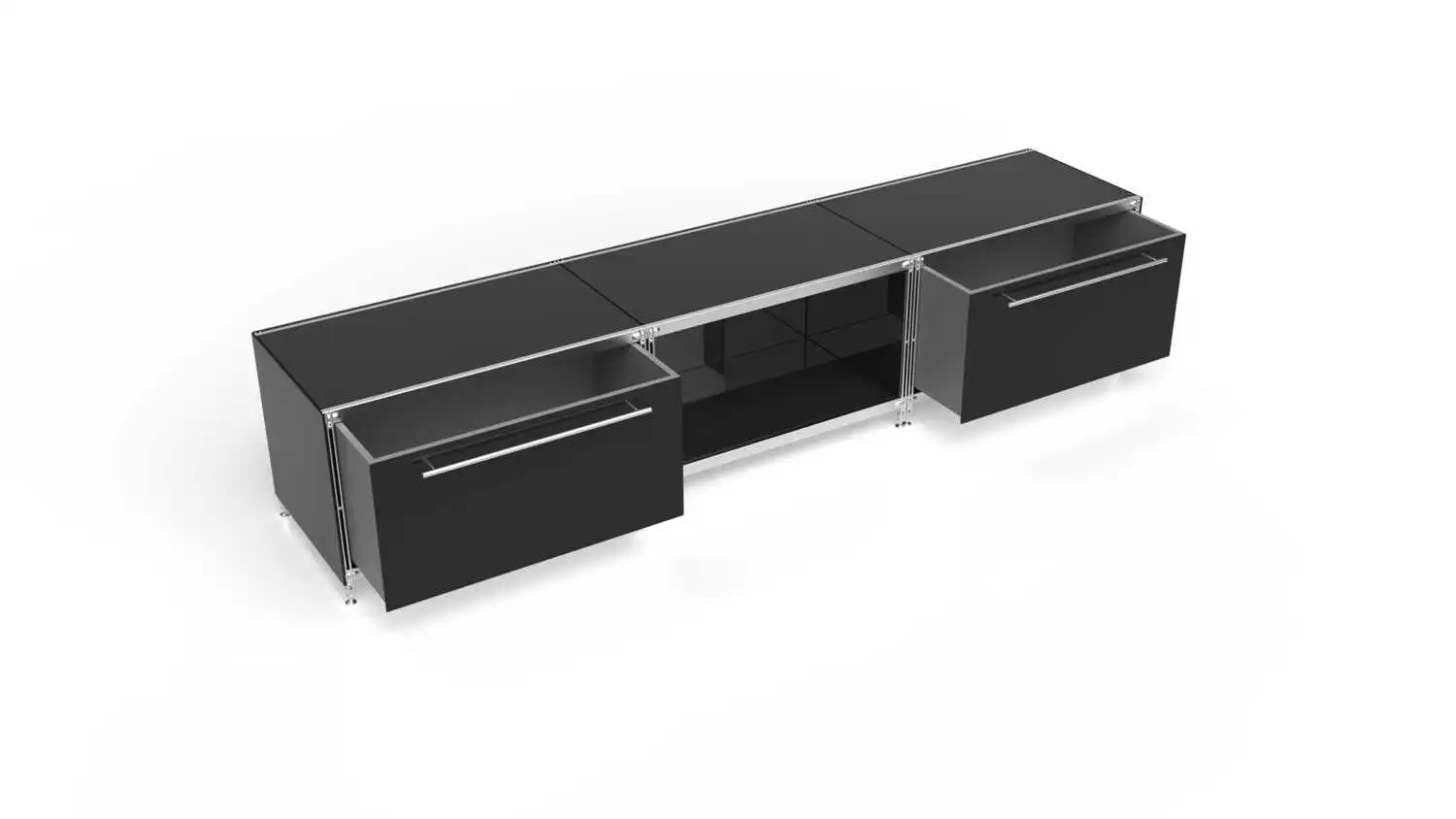 KUBUS Lowboard Metall schwarz mit 2 Schubladen + offenem Fach 235 cm breit