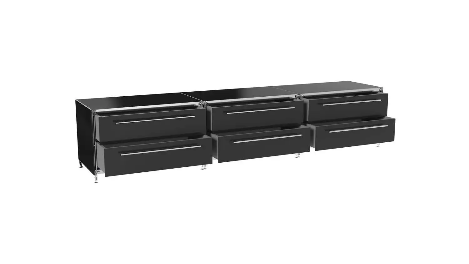 KUBUS Lowboard Metall schwarz mit 3 Doppel-Schubladen 235 cm breit