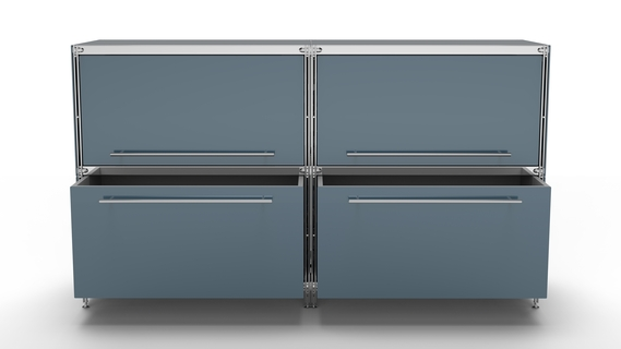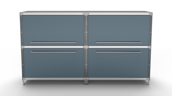 KUBUS Sideboard Metall anthrazit pulverbeschichtet mit 2 Klappen + 2 großen Schubladen 160 cm breit