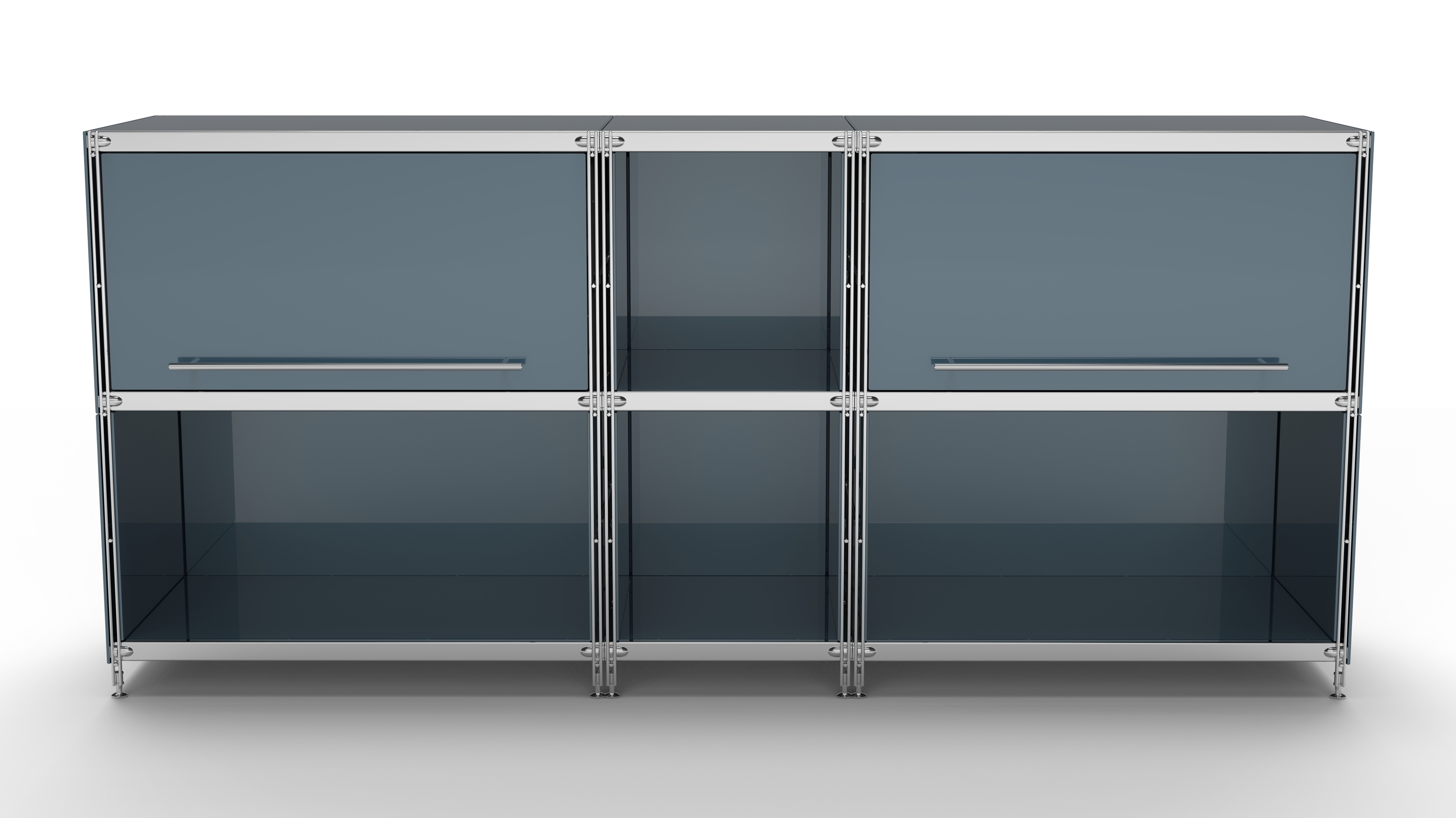 KUBUS Sideboard Metall anthrazit pulverbeschichtet mit 2 Klappen + 4 Fächern offen 196 cm breit