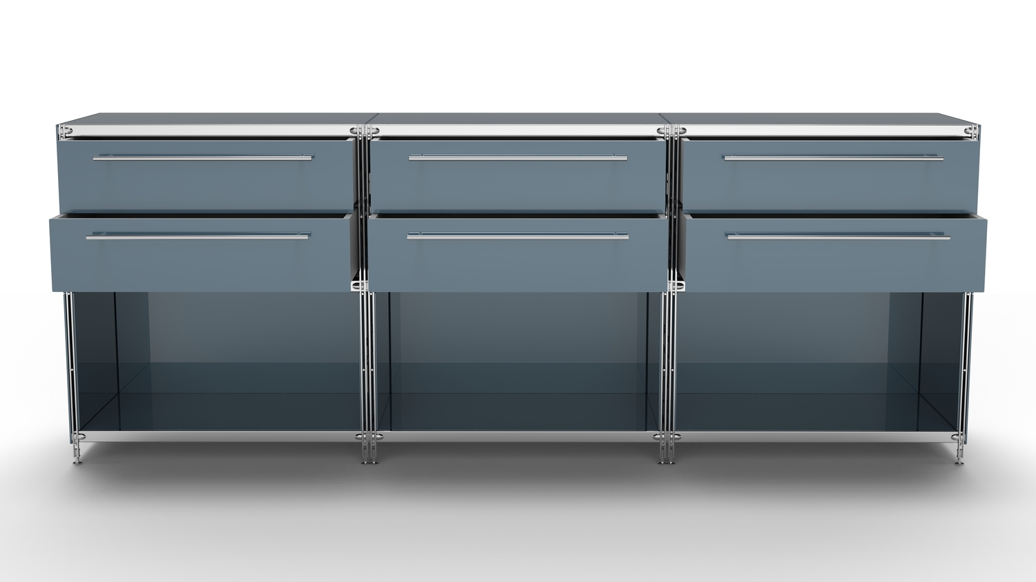 KUBUS Sideboard Metall anthrazit pulverbeschichtet mit 3 Doppel-Schubladen + 3 Fächern offen 235 cm breit