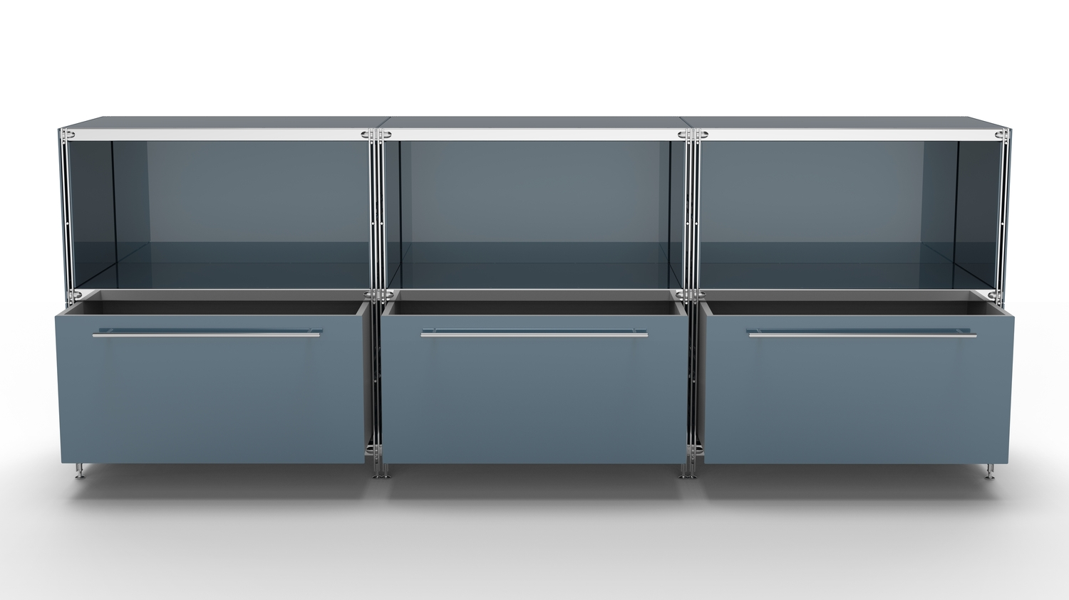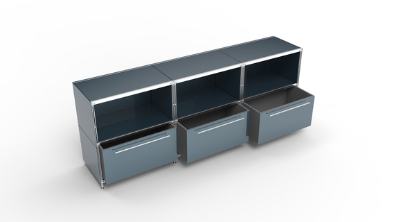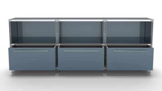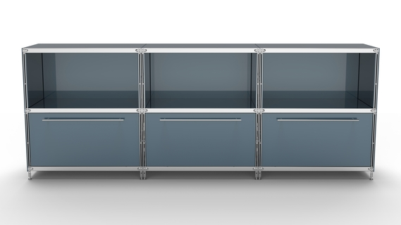KUBUS Sideboard Metall anthrazit pulverbeschichtet mit 3 Fächern offen + 3 großen Schubladen 235 cm breit