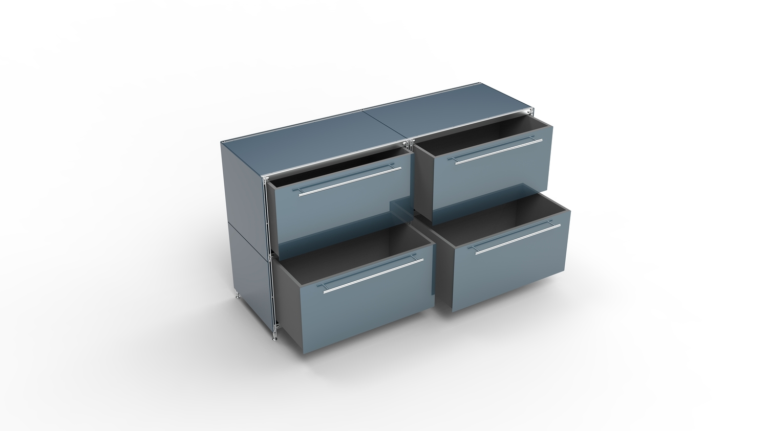 KUBUS Sideboard Metall anthrazit pulverbeschichtet mit 4 großen Schubladen 157 cm breit