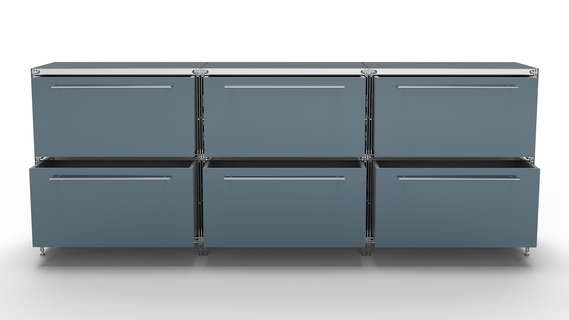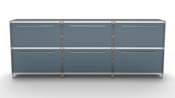 KUBUS Sideboard Metall anthrazit pulverbeschichtet mit 6 großen Schubladen 235 cm breit