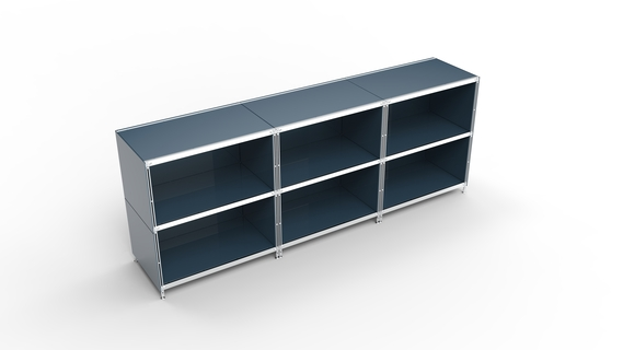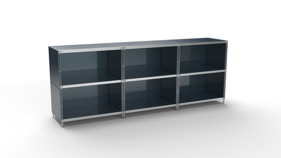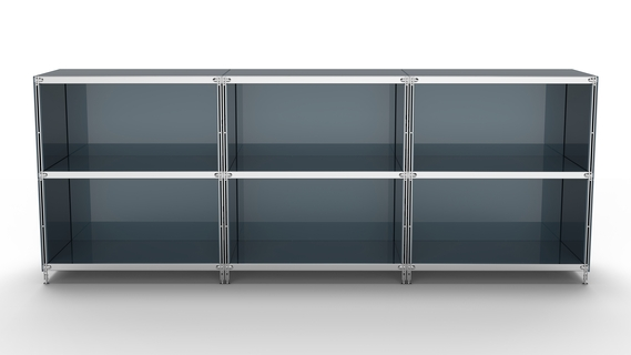 KUBUS Sideboard Metall anthrazit pulverbeschichtet mit 6 offenen Fächern 235 cm breit