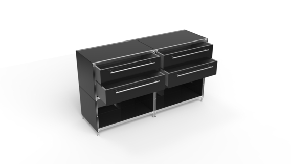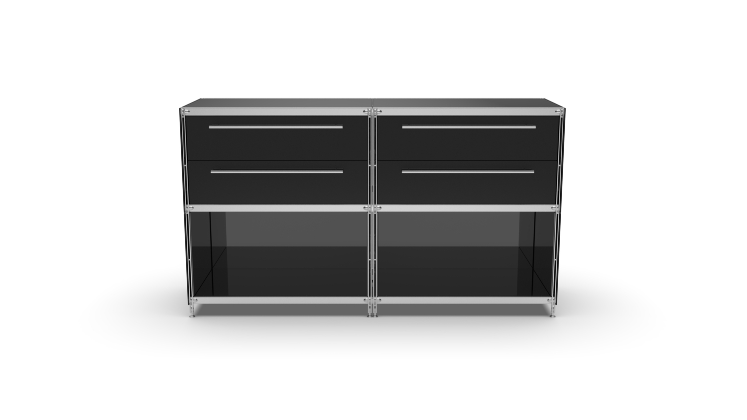 KUBUS Sideboard Metall schwarz pulverbeschichtet mit 2 Doppel-Schubladen + 2 Fächern offen 160 cm breit
